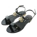 ドルチェ&ガッバーナ DOLCE&GABBANA サンダル エナメル オープントゥ フラット ストラップ DGロゴ ゴールド金具 37 24cm 黒
