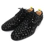 極美品△DOLCE&GABBANA ドルチェ&ガッバーナ ラインストーン スウェードレザー ダービーシューズ ドレスシューズ ブラック 6 伊製 メンズ