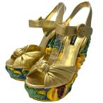 【希少 陶器】ドルチェ&ガッバーナ ドルガバ パンプス サンダル ヒール ミュール レザー ゴールド [表記サイズ 35 (約22cm)]