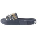 DOLCE & GABBANA ドルチェアンドガッバーナ スタッズ チェーン装飾 シャワー フラットサンダル ブラック