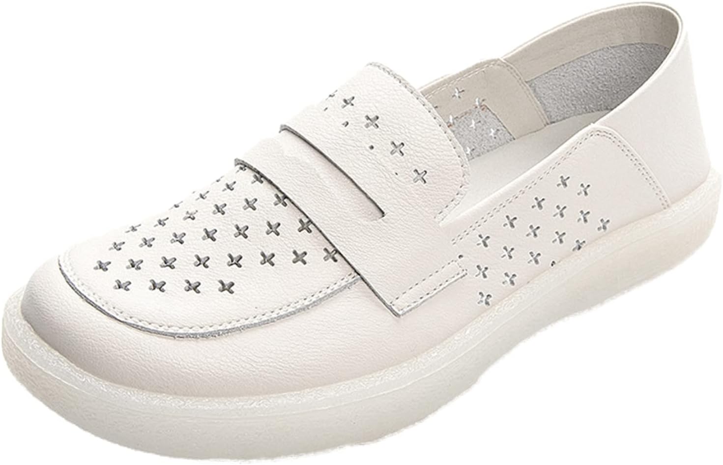 ホワイトシューズ レディース 春 夏 パンプス おしゃれ 可愛い 透かし彫り パンチング 通気性 蒸れない 大人 カジュアル クッション やわらか 革 フラット ナースシューズ 滑り止め ローファー