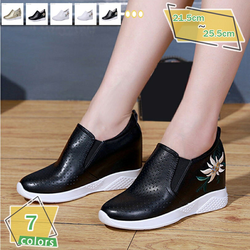 レディースシューズ 厚底 モカシン ウエッジソール 厚底靴 花柄 プラットフォーム パンプス スニーカー 長時間立ち仕事 疲れない 履きやすい 歩きやすい ナースシューズ 看護師 身長アップ 婦人靴