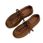 カジュアルシューズ レディース ワラビー パンプス フリンジ おでこシューズ ローカット レースアップ レザー 防滑 歩きやすい フラット