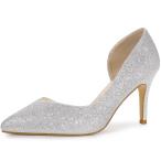 Perphy グリッター パンプス ポインテッドトゥ スリッポン スティレットヒール レディース シルバー 26.0 cm