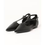 パンプス 「ふわっと軽い エアスイート」 アンクルストラップ ポインテッドトゥ フラットパンプス