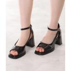 サンダル オープン スクエアトゥ アンクル ストラップ チャンキー パンプス レディース