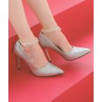 パンプス アンクルストラップワンカラーラメパンプス(10.5cmヒール)