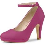 uxcell Allegra K アンクルストラップ パンプス ラウンドトウ スティレットヒール レディース ホットピンク 26.5 cm