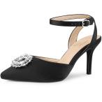 uxcell Perphy パンプス ラインストーン アンクルストラップ スティレットヒール レディース ブラック 24.5 cm