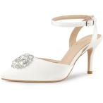 uxcell Perphy パンプス ラインストーン アンクルストラップ スティレットヒール レディース ホワイト 25.5 cm