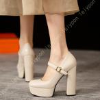 厚底 アンクルストラップ パンプス ハイヒール 12cm 高め ラウンドトゥ ヒール 太め レディース キャバ キャバパンプス 結婚式 パーティー 春 夏 秋 冬 黒