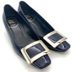 ロジェヴィヴィエ Roger vivier ゴールドプレート ヒール パンプス エナメル ネイビー 22.0cm レディース