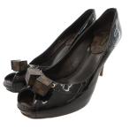 サルヴァトーレフェラガモ パンプス エナメル ミドルヒール アーモンドトゥ レザー ヴァラリボン バイカラー 4.5 21.5cm 黒 赤
