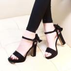 オープントゥ サンダル 太ヒール ストーム 厚底 アンクルストラップ リボン ハイヒール キャバパンプス パーティー 8cmヒール 大きいサイズ キャバサンダル