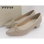 ◇ ◎ Le Lien plus ポインテッドトゥ リボン クロコダイル 型押し パンプス サイズS グレージュ レディース