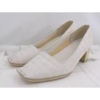 ◇ SESTO セスト スクエアトゥ クロコダイル 型押し ヒール パンプス サイズ 23.5cm ライトベージュ レディース E