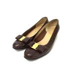 Salvatore Ferragamo フェラガモ ヴァラリボン クロコダイル型押しレザー パンプス サイズ 7 1/2(約25cm) 靴 ブラウン系 DF3770