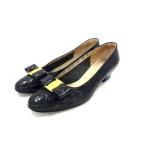 Salvatore Ferragamo フェラガモ ヴァラリボン クロコダイル型押しレザー ヒール パンプス 6 1/2(約23.5cm) 靴 ブラック系 DH8395