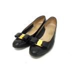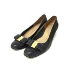 Salvatore Ferragamo フェラガモ ヴァラリボン クロコダイル型押しレザー ヒール パンプス サイズ6 (約23.5cm) 靴 ブラック系 DJ7203