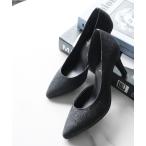 パンプス ポインテッドトゥ サイドオープン サテン&グリッター ハイヒールパンプス「日本製」
