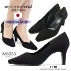 ブラックパンプス サテン素材 布 impact material IM-6630 7cmヒール 3E 履きやすい 快適美脚 レディース フォーマルパンプス サイズ交換可能