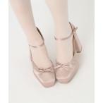 パンプス サテン ボウスクエアトゥスリングバックパンプス