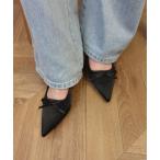パンプス サテン ミニリボン ポインテッドトゥ ミュール