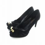 ルイヴィトン LOUIS VUITTON パンプス スエード ロゴ タッセル ポインテッドトゥ ハイヒール 22.5cm 黒 ブラック MA0121