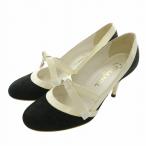 シャネル CHANEL パンプス スエード エナメル ラウンドトゥ ハイヒール ココマーク 36 23cm 紺 ネイビー 白 ホワイト
