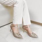 結婚式 パンプス 痛くない 歩きやすい スリングバック セパレート ポインテッドトゥ ビジュー ストラップ 5cm ヒール サテン レース メタリック ラメ J3561AL