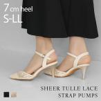 パンプス 痛くない 歩きやすい セパレート ポインテッドトゥ アンクル ストラップ 7cm ヒール レース チュール 刺繍 シアー グリッター J3775AL レース ZOZO