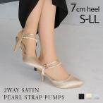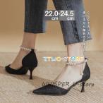 パンプス 痛くない 歩きやすい 結婚式 二次会 Vivian 7cm ヒール パール アンクル ストラップ セパレート ブラック 黒 パーティ J4936AL ZOZO ポインテッドトゥ
