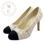 シャネル CHANEL パンプス 靴 シューズ ツイード ファブリック アイボリー ピンク ブラック ココマーク