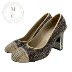 シャネル CHANEL パンプス 靴 シューズ ウール レザー マルチカラー ベージュ ロゴ ツイード