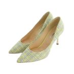 ◇ esperanza ポインテッドトゥ カジュアル スタイルアップ ツイード パンプス サイズ22 1/2 グリーン レディース E 【中古】