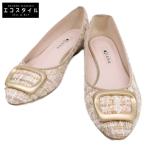 新品同様/ Diana ダイアナ スクエアバックル プレーンゥ ツイード フラットパンプス 22 1/2 ベージュ レディース