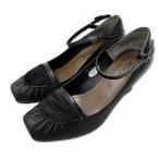 KiKord キーコード レザー × ハラコ ストラップ パンプス 23 ブラック レディース
