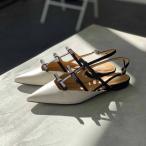 パンプス スクエアバックル ポインテッドトゥバックベルトパンプス