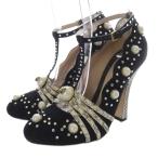 グッチ GUCCI ビジュー パール パイソンヒール パンプス 39.5 黒 ブラック アイボリー 447601 /SR21 レディース