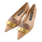 アルテミス バイ ダイアナ artemis by DIANA バックコンシャス パイソン柄切り替えラウンドトゥパンプス (ダークベージュ人工スムース)