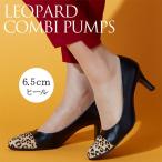 ヒョウ柄コンビパンプス レオパード 切り返し PUMPS 黒 ブラック コンビ ヒール6.5cm 送料無料