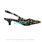 uxcell バックストラップ パンプス スリングバック ポインテッドト チャンキーヒール レディース ヒョウ柄 24.0cm