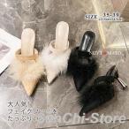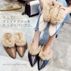 パンプス ファー付きパンプスポインテッドトゥ韓国風