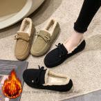 ファー付き フラットシューズ パンプス 冬靴 歩きやすい 暖かい ローヒール 痛くない 防寒 可愛い もこもこ あったか ファー モカシン スエード調 レディース
