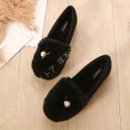 ローファー レディース ファー付き パンプス フラットシューズ ぺたんこ 歩きやすい 痛くない ふわふわ 秋冬 暖かい 22.0cm〜26.5cm 黒 ベージュ