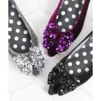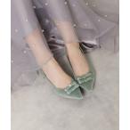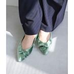 パンプス スパンコールリボン ベルベットフラットシューズ