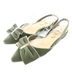 ヒューン HEWN リボンスリングバックフラットシューズ パンプス ベルベット 36 カーキ /KU レディース