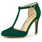 uxcell Allegra K パンプス レディース ラウンドトゥ スティレットヒール Tストラップ ドレス グリーン 25.5 cm