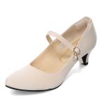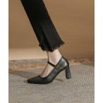 パンプス ポインテッドトゥ甲ストラップ ローヒールパンプス