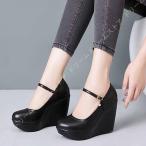 パンプス 甲ストラップ ラウンドトゥ ウェッジソール ヒール 11cm 黒 結婚式 入学式 卒業式 痛くない 歩きやすい 厚底 ストラップ 通勤 オフィス パーティー